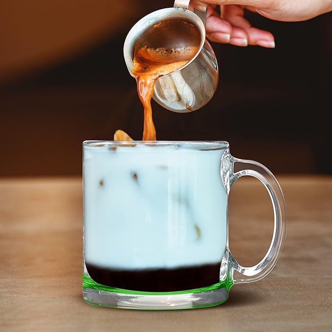 Libbey Clear Glass Coffee Mugs 13 oz. Set of 10, Bulk Pack - Perfect for Coffee, Tea, Espresso, Hot Cocoa, Other Beverages - Green Bottom