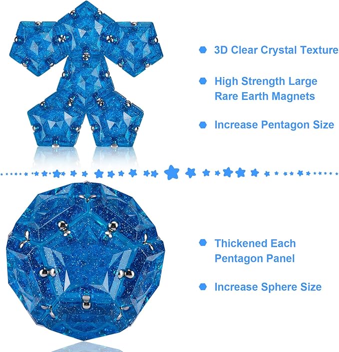 • [Holographic Glitter Panel]: Each pentagonal panel has stunning crystals and iridescent glitter, which emits dazzling iridescent when exposed to direct sunlight or lamplight. Each surface is cut into convex and concave shapes to better trigger nerve endings in fingertips and boost IQ.
