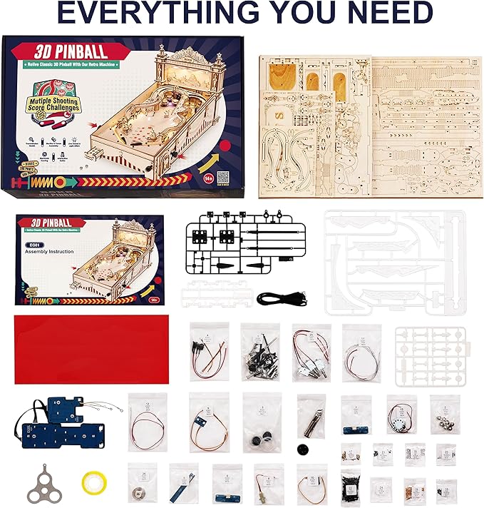 • CLASSIC WOODEN MODEL GAMES:Feel like a kid again when you put together 3d puzzles Pinball Machine with your family and friends,The 80's and 90's classic games.Whether playing for fun or competitively with your friends and family, this wooden puzzles Pinball Machine is guaranteed to be a big hit.