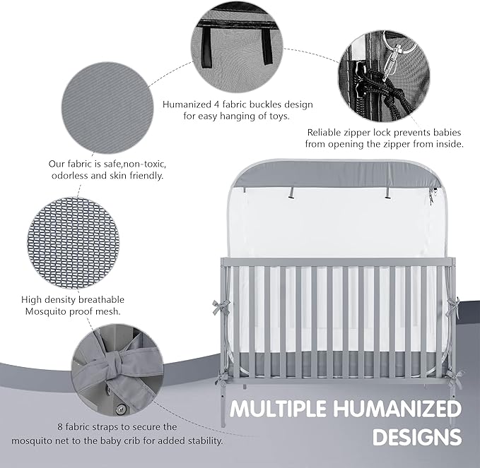 • VERSATILE USE - Our team's initial design goal was to prevent baby from climbing onto the crib, avoiding the danger of falling and limbs getting stuck by the fence. Additionally, our baby crib net can prevent mosquito bites and provide a safe, comfortable, and breathable protective space for your active baby, allowing parents to rest assured.