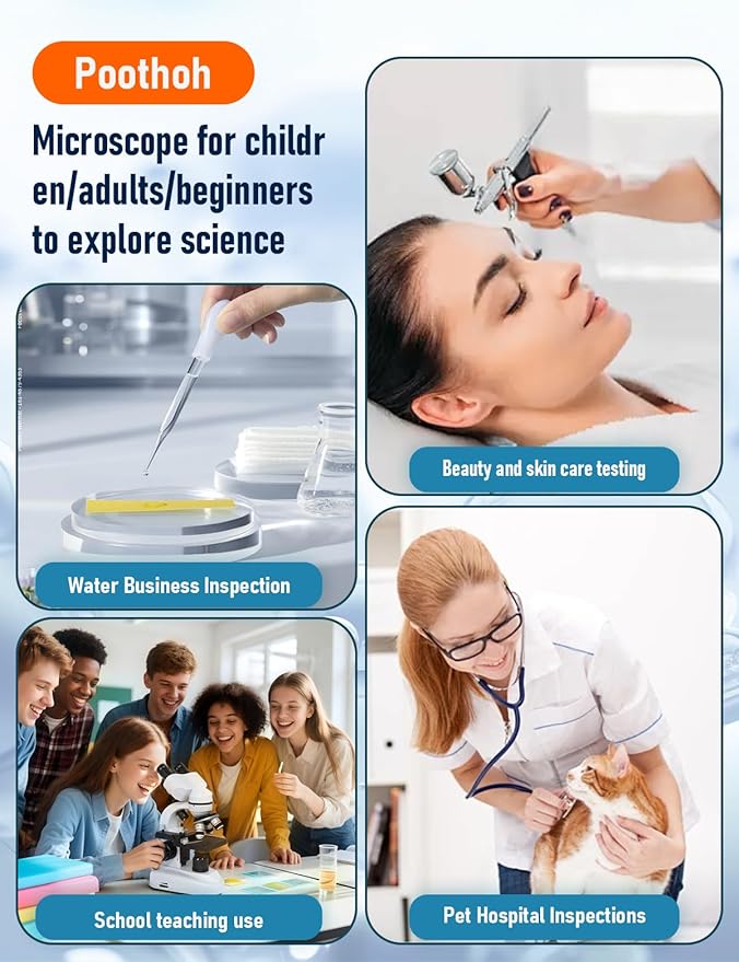 • Compound Microscope: Adult Microscope is widely used in student subjects for research and experimental operations suitable for students/children/adults/beginners/amateur scientists/enthusiasts to explore the wonderful world of life. It is the best choice for school, laboratory or home teaching and education