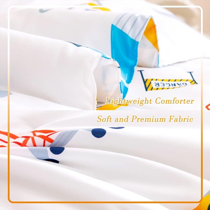 • 【REVERSIBLE DESIGN】This construction toddler bedding for boys and girls is designed with trucks, excavators, and cranes patterns on white color, typically featuring colorful and detailed construction vehicles can help stimulate children's interest and add more fun to babies room. It’s also a great option for any toddler room as a bedroom décor.