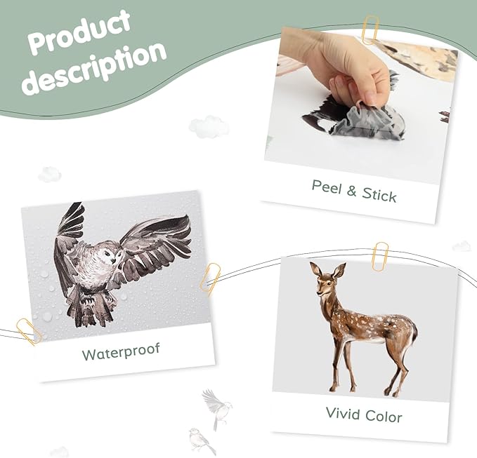 • Special Feature : 52in Large Woodland Animal Wall Decals, Easy Peel and Stick Wall Decals, Realistic Safari Animal Wall Decals, Vinyl Forest Animal Tree Wall Decals Large, Watercolor Jungle Animal Wall Decals 52in Large Woodland Animal Wall Decals, Easy Peel and Stick Wall Decals, Realistic Safari Animal Wall Decals, Vinyl Forest Animal Tree Wall Decals Large, Watercolo… See more