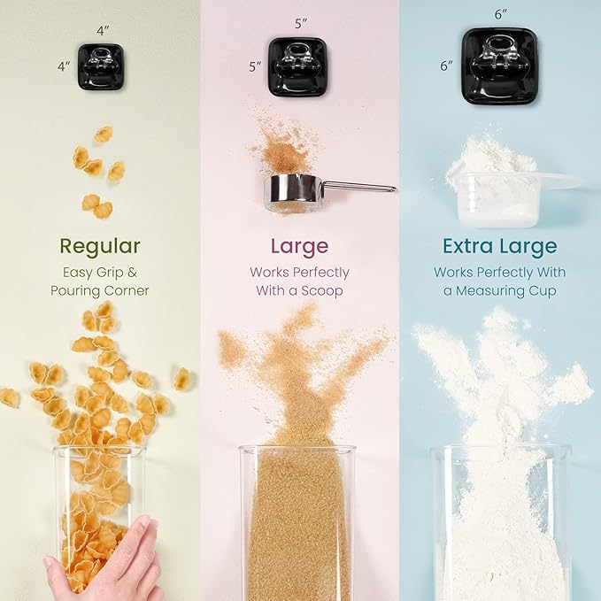 • IDEAL FOR STORING FOOD & GOODS IN BULK: Both 6" EXTRA LARGE & 5" LARGE sized containers are way bigger, wider, and hold way more than other containers in the market. Perfect for storing large quantities of food and powder which require a scoop or a measuring spoon to go along.
