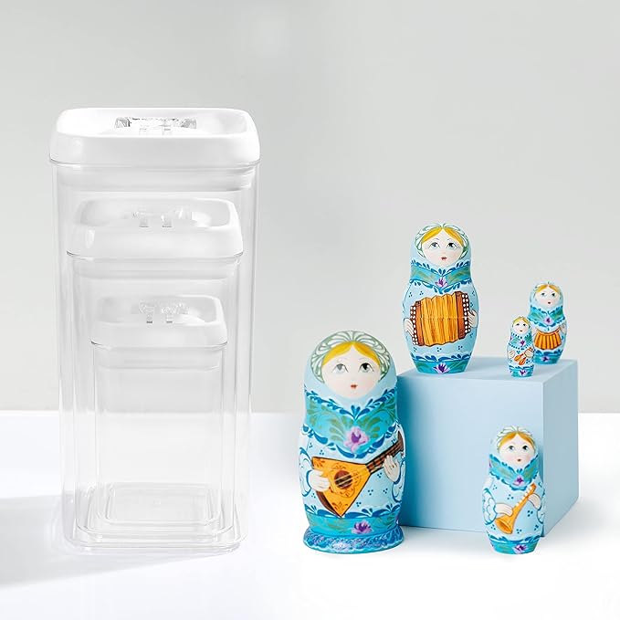 • SPACE-SAVING: Nestable containers offer efficient storage by fitting inside one another when not in use, conserving essential cupboard or pantry space. Additionally, canisters of the same size stack securely, optimizing vertical storage.