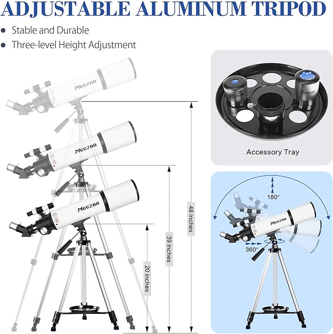 • Satisfaction: The MEEZAA telescope for adults and astronomy beginners is perfect for stargazing, observing planets, and the Moon. Trusted by thousands of users, MEEZAA brings the wonders of the universe closer to you.