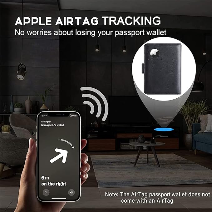 • PASSPORT AND AIRTAG HOLDER COMBO - The built-in holder for Apple Air Tag combine passport wallet and AirTag ideally to make sure you never lose your passport wallet again. Misplaced or lost your passport wallet? Keep track of and see where you last had it alongside friends and devices in the Find My app. The AirTag passport wallet does not come with an Airtag.