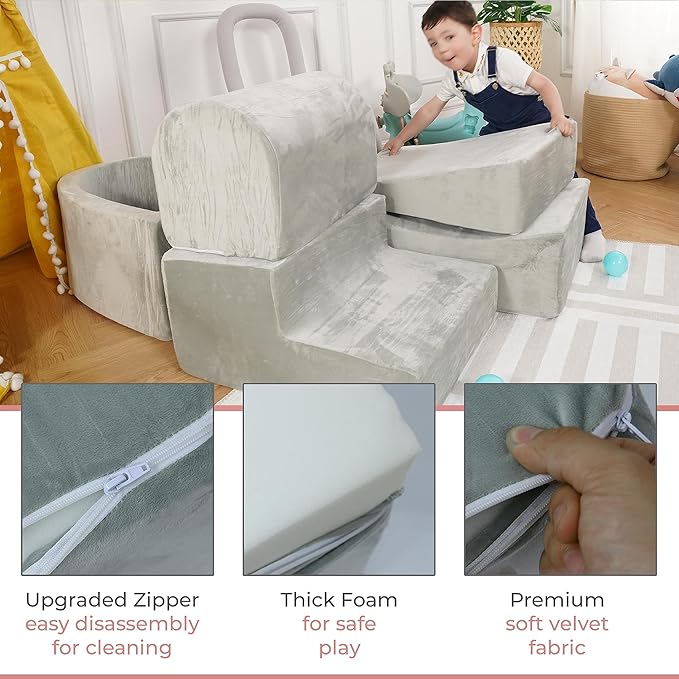 • HIGH DENSITY MEMORY FOAM - Invest in a play set that stands the test of time! Our foam climbing blocks are made from high-quality materials, ensuring long-lasting durability to withstand many play sessions.