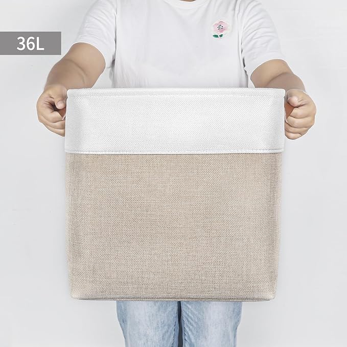 • 【Large Storage Cube】- Set of 4 decorative storage baskets, dimensions (each): 13” (L) x 13” (W) x 13” (H) / (33cm x 33 cm x 33 cm). Its huge capacity can keep your home nice and tidy. Minimalist design and neutral color can be integrated into any home decorations and styles. Sturdy fabric baskets add a stylish touch to a living room, bedroom, office, kitchen or personal space.