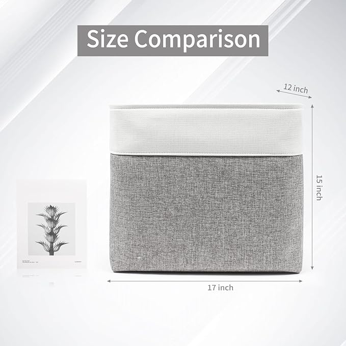 • 【Extra Large Storage Bin】- Set of 3 decorative storage baskets, dimensions (each): 17” (L) x 12” (W) x 15” (H) / (43.2cm x 30.5 cm x 38 cm). Its huge capacity can keep your home nice and tidy. Minimalist design and neutral color can be integrated into any home decorations and styles. Sturdy fabric baskets add a stylish touch to a living room, bedroom, office, kitchen or personal space.