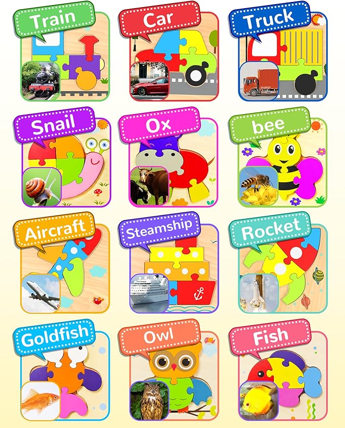• SAFETY AND HIGH QUALITY:Our toddler puzzles for young kids include high-quality, chunky wooden pieces to ensure tiny hands can easily grasp the pieces and complete the puzzle. The edges of wooden puzzles are smooth , it keeps your 1 2 3 years old plus boys and girls play safely. Your children will love the large, thick pieces of this toddler toy, which are easy to handle and put together.