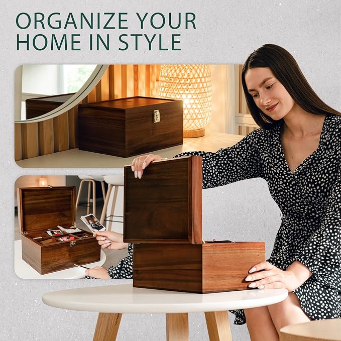 • ✔️ Durable Quality Hardwood: Made with premium Acacia hardwood and treated inside and out in a modern matt finish in the choice of two colors, this large wood box with lid is sure to make the ideal addition to your home.
