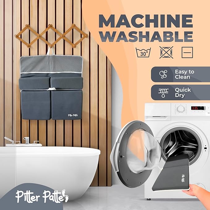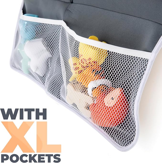• [Extra-Large Foam Pad with XL Capacity Pockets] - This XL kneeling pad for bathing baby measures 22.2” x 11.3” which is longer and wider than most. Two 9" deep front pockets offer ample space for storing baby essentials for bathtime like shampoos, soaps, toys, and more. Two 6" deep back pockets offer bath toy organizer for tub so your toddler can play. Our baby knee pads and elbow rest pad will keep everything you need within arm's reach.
