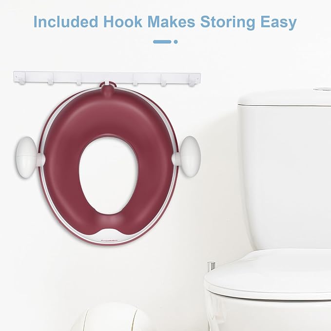 • Ergonomic Design - Streamlined high-back design fits the baby's back, ergonomic design protect your baby's spine from damage. Also, anti-splash design of the training seat prevents spills outside the toilet. Self-contained hook design for easy storage, detachable high quality cushion makes cleaning easy.