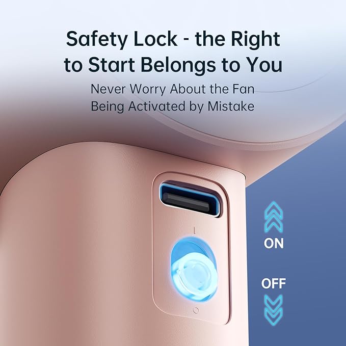 • Digital Display - Power Reminder: This portable fan for travel is equipped with a high-definition digital display screen, which can show the current wind speed and remaining battery power, so you no longer need to worry about the remaining power of the fan. When the battery of this mini fan is low, you can arrange for charging in advance, ensuring a cool companion on every trip