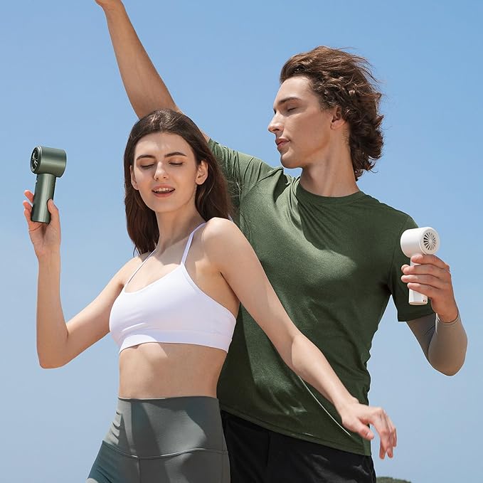 • Brushless Motor - Super Power: The combination of a three-phase brushless motor and a 3600mAh battery significantly improves the wind speed, power, and endurance. The maximum wind speed can reach 9m/s. The highest rotation speed of the handheld fan is three times that of a regular personal fan, reaching up to 15000 RPM. It can cool for 2-12 hours on a single charge