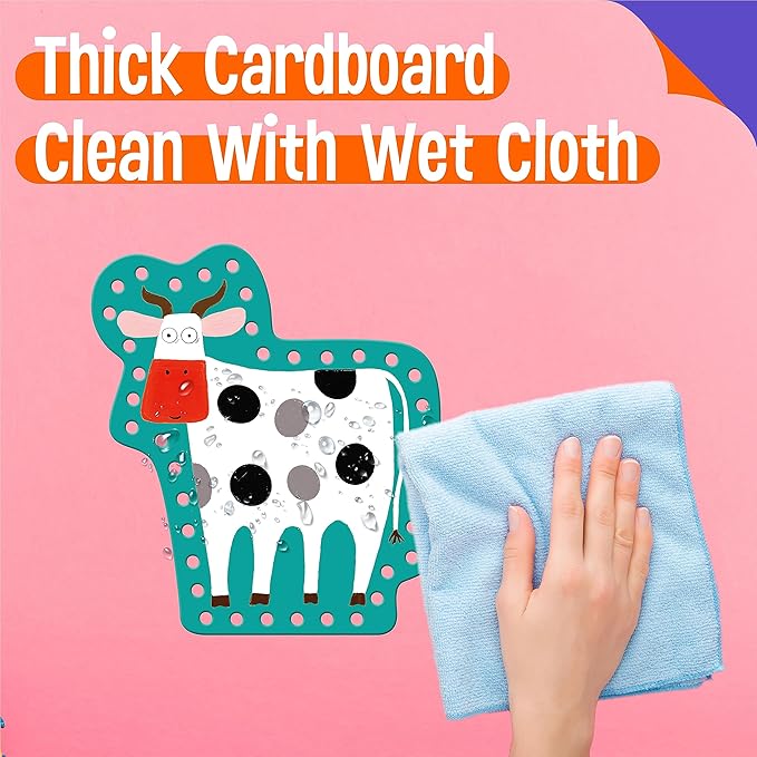 • Bright-colored & Eye-catching: The pattern covers different farm animals, like duck, pig, horse, cow, rabbit, frog, sheep, mouse and rooster. The patterns on cards are colorful, big and vibrant. The holes are clearly cut and easy for preschoolers to work with. The strings are easy for children to use and fit into the holes easily.