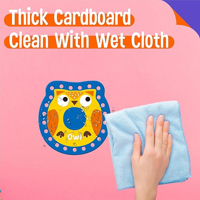 • Premium Material: The lacing cards are made of sturdy cardstock, durable and handy. Double side printed with premium plant ink, non-toxic and no odd smell, safe enough for toddlers’ use. The laces are made of quality polyester, which is not simple to break, and can serve you for a long time.