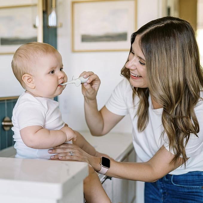 • CONVENIENT COUNTERTOP STORAGE. The elephant ears let baby set the brush down without surface contact or the stable base lets you securely store it upright.