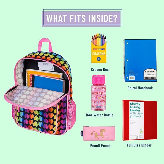 Wildkin ECO rPET Kids Backpack – Recycled, Padded, Adjustable for School & Travel – Rainbow Hearts