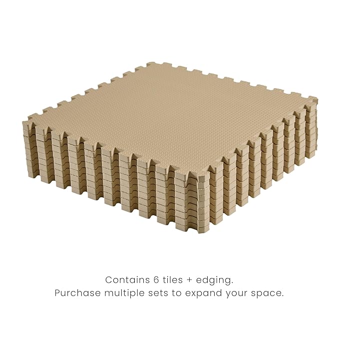 Toddlekind Solid Color Foam Play Mat 4x4 Baby Playmat. Stylish, Non-Toxic, Odorless, Plain Design Puzzle Play Mat 0m+ (Beige)