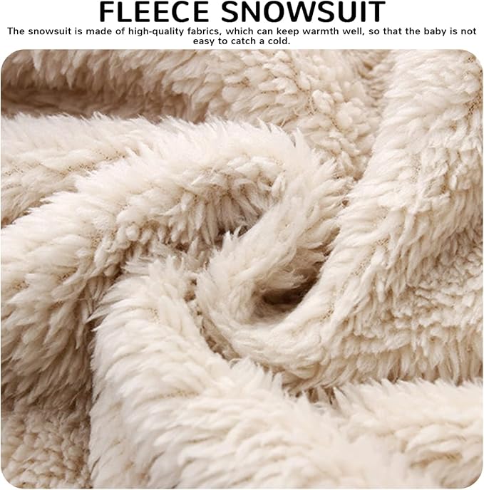 • ??Design: Baby fleece snowsuit jacket warm one-piece jacket, full-cover zipper design to protect the baby from harm, one pull to the end, it is convenient for the baby to change diapers, the flip-up gloves can keep the baby warm and energetic at the same time, the bear ear one-piece cap makes the baby Avoid cold winds outdoors while increasing your baby's charm.