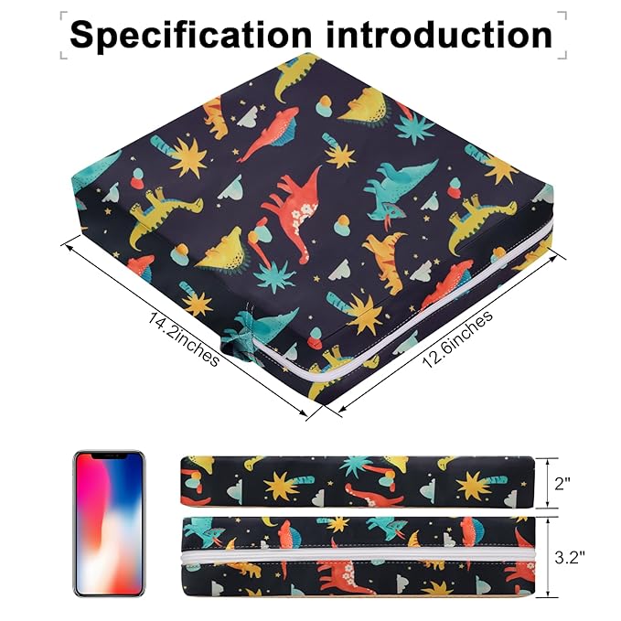 • SAFETY ANTI-SLIP BOOSTER SEAT - Booster seat has two safety belts on the cushion, which can be fixed on the back and bottom of the chair, and there is anti-slip silicone at the bottom of the cushion to ensure that the cushion will not slip off. Double protection for children's safety when eating. In order to accommodate more dining chairs with a larger size, we have adjusted the size of booster chair for toddlers eating, increased the original length from 12.6 inches to 14 inches