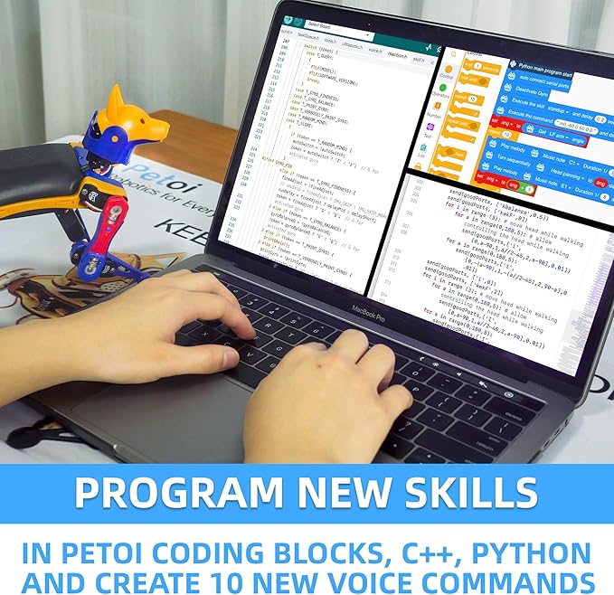 • Voice Command Responsive Educational Robots: Our upgraded coding robot performs 35+ lifelike actions like sit, walk, and backflip. Customize up to 10 voice commands using C++. A perfect robotic dog experience for kids 10+ and robot enthusiasts.