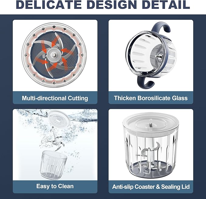 • 【Easy to Use and Clean】With a simple one-button operation, you can easily use the baby food blender to blend, puree, or chop your baby food. The mixing bowl, blades and lid are completely separated from the body and can be easily disassembled and cleaned. This baby food maker also comes with a recipe book to help new parents get better at using it.