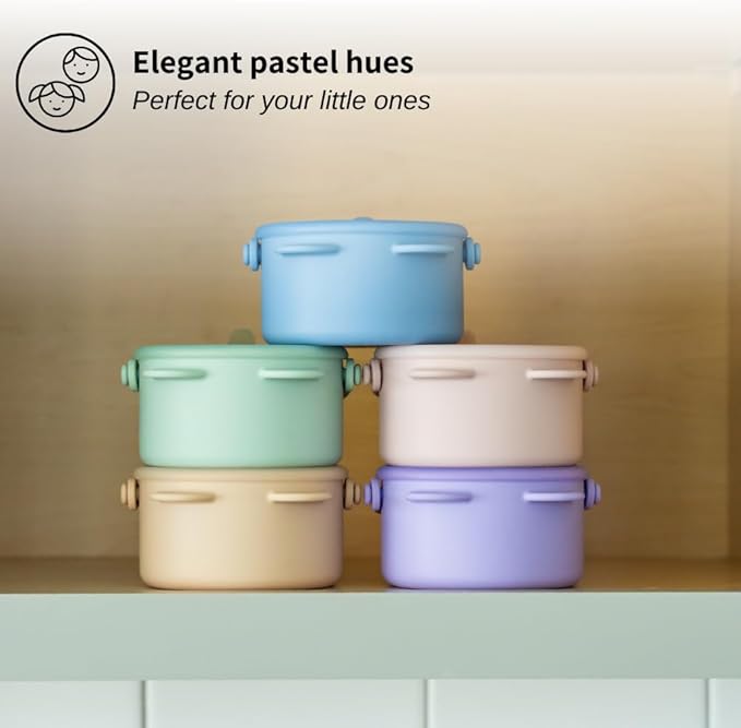 • Munch on the Move with Ease: Our 4.2” silicone snack cup promises easy handling and effortless on-the-move munching; The petal-like opening on these baby snack cups welcomes those little fingers, making snacking a breeze every time