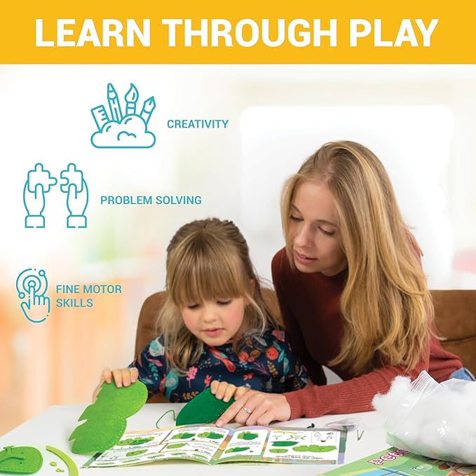 • ๐ŸŽจ CONTAINS EVERYTHING YOU NEED: This sewing kit contains everything you need (yes, really everything) so you can get started straight away on these fun craft projects. This 165+ pcs set includes 8 pre-cut felt projects, 7 colors of embroidery thread, 10 pairs of craft eyes, plastic and metal sewing needles, 40 straight pins, needle threaders, scissors, stuffing, and easy to follow instructions.