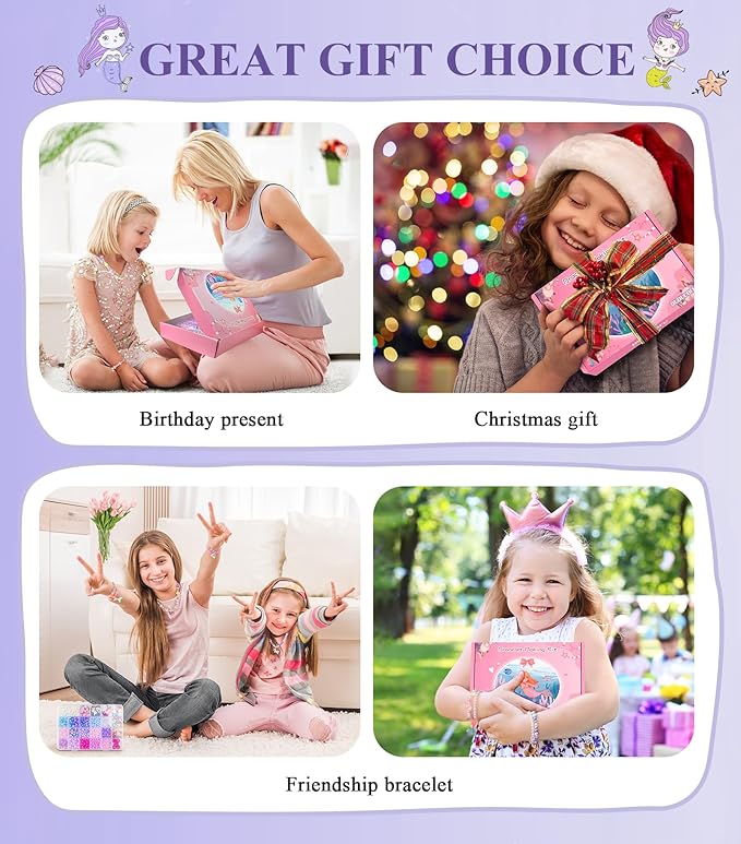 • Add More Ocean Charm Pendants and Bead Styles: The mermaid bead kit contain a variety of charm pendants, including mermaid girls, mermaid tails, starfishes, seashells, rainbows, pearls, butterfly, heart, etc. Also added more ocean pearl beads, heart beads and shell beads, to provide more bead style and color options. Kids can give full play to their imagination and create their own unique works.