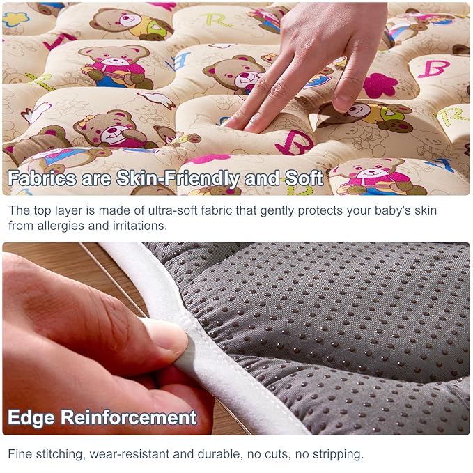 • Easy to clean: No worries at all about mats stained with urine, milk, juice and other stains, our mats are machine washable and can be washed in a large washing machine and dried at low temperatures, which is very convenient, especially for busy parents.
