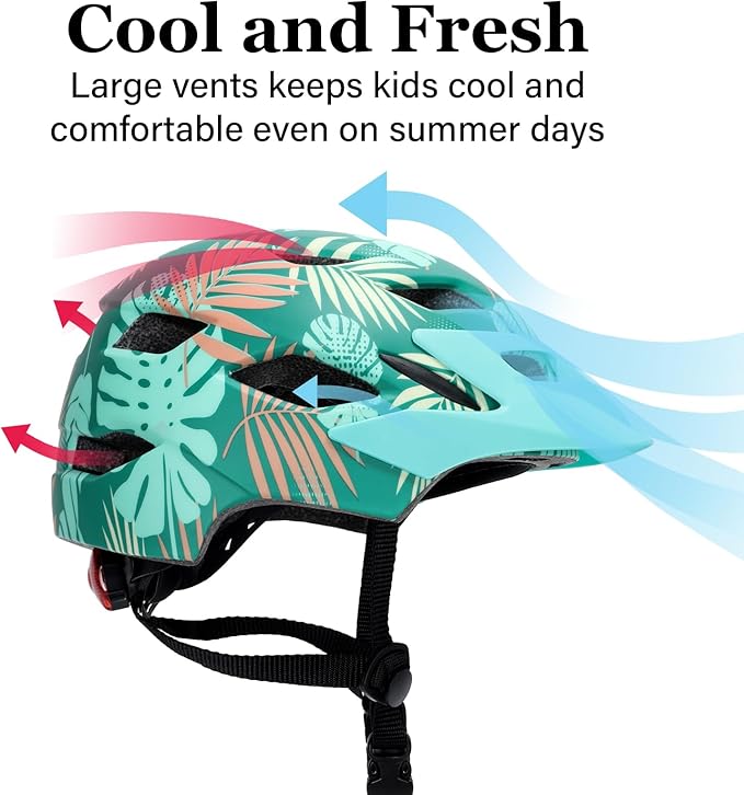 • Safety First, Always: The kids bike helmet is made of sturdy PC shell and thickened shock-absorbing EPS foam, providing maximum head protection for kids aged 2-14. Plus, The flashing rear LED light adds crucial visibility, ensuring your child stays safe and seen-even in low-light conditions