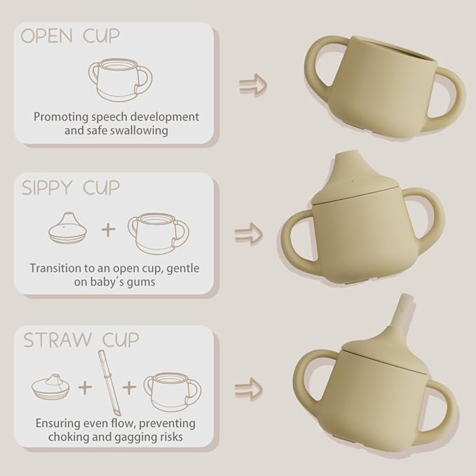 • 【Three-in-one Design (with straw + spout + open cup)】 Our baby cup features a versatile three-in-one design that can be converted from a sippy cup to a straw cup to an open cup, encouraging your baby to develop drinking skills.The open cup promotes lip closure, speech development, and safe swallowing while also preventing tooth decay. Going from a straw to independent drinking is such a huge milestone for early development, so we have designed one cup that will be there for every step.