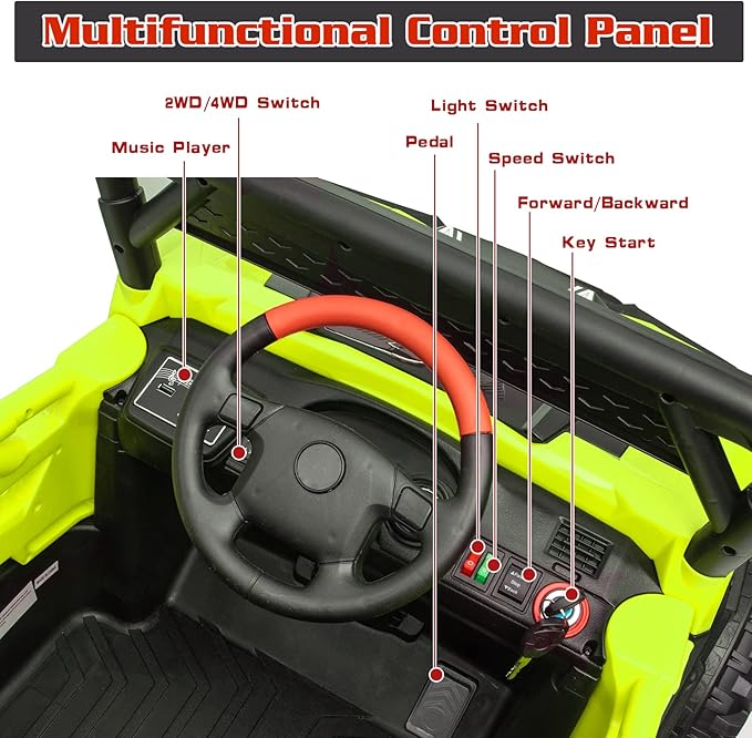 • DIRVE WITH FUN- Our kids electric car provides your children with extra fun through its built-in music, AUX input, USB port, and the Bluetooth function allows your kids to enjoy their favorite songs during driving, which will definitely add fun to the playtime