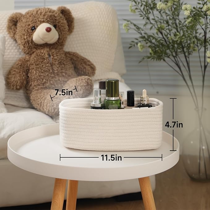 • [ Compact Size ]: With dimensions of 11.5 x 7.5 x 4.7 inches, this rectangular basket is designed to accommodate most small household items. Each set of 3 pieces can be sorted to store cosmetics, jewelry, baby diapers, towels, remote controls, keys, credit cards, wallets, charging cables, toys, snacks, paper towels, and more