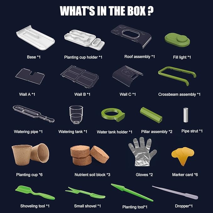 • [Kids Gardening Plant Growing Kit] This greenhouse sunshine room plant kit comes with 3 planting tools including 1 soil shovel, 1 small shovel and 1 planting tools, 1 water dropper for irrigation system, 6 planting pots, 6 marking placards and 3 nutrient soil. Note: the nutrient soil needs to soak before you use it and the seed is not included, you can prepare any kinds of your favorite flower and plant seed to plant.