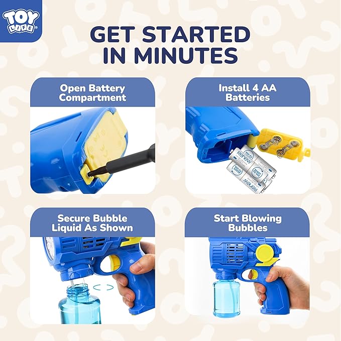 • Quick & Easy Battery Setup: Simply insert 4 AA batteries (not included) and start blowing a steady stream of bubbles instantly.
