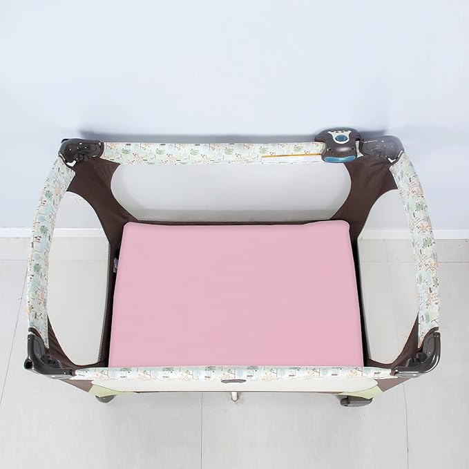 • Perfectly Fit: With the elastic bandage surround, this playard sheet can snug fit your pack and play or potable playard mattress no loose but flat which gives your baby a comfortable playground. Also fit for a mini crib mattress.