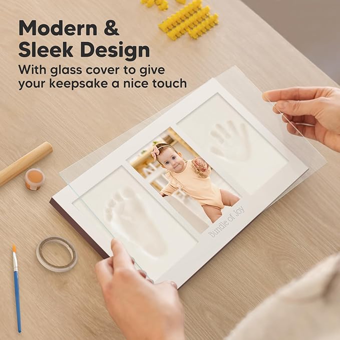 • 100% Safe Food-Grade Clay - Our baby picture frame features 100% baby-safe air-dry clay, perfect for preserving your baby prints. Our premium material ensures durability, the baby hand and footprint maker will look flawless for years to come.