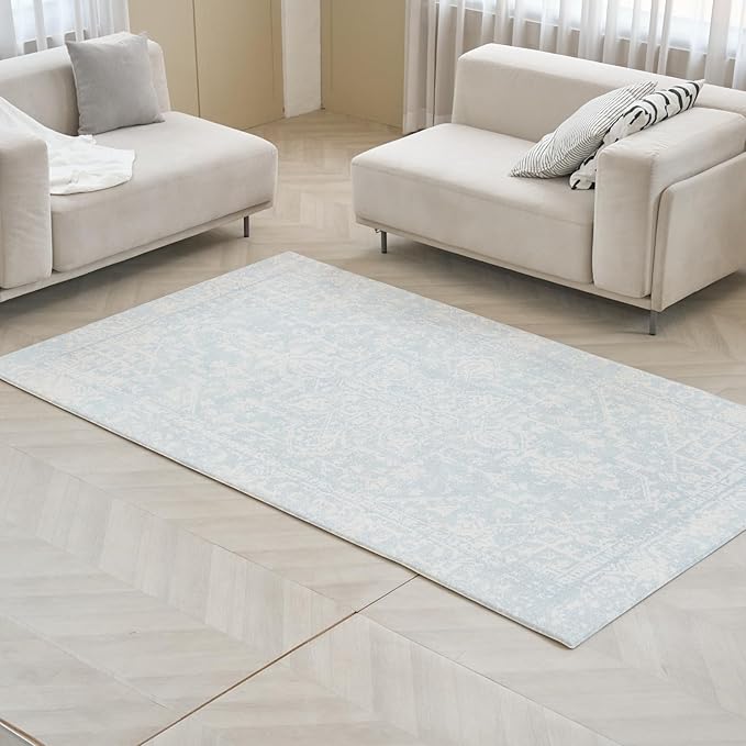 Baby Care Soft Rug (Prestige, Ikat - Inca Blue) 98'' x 59'' Original One-Piece Reversible Rollable Waterproof Play Mat for Infants, Babies, Toddler, and Kids