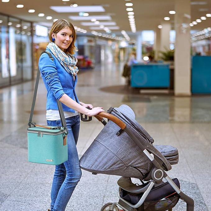Breastmilk Cooler Bag with Ice Pack Fits 6 Baby Bottles Up to 9 Ounce, Baby Bottle Bag with Shoulder Strap for Nursing Mom Daycare, Aqua