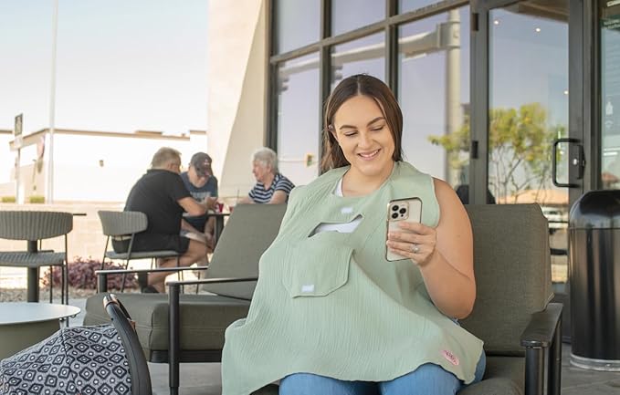 Muslin Nursing Cover for Baby Breastfeeding โ€“ with Peekaboo Window -100% Breathable Cotton Privacy Nursing Shawl - Multiuse Apron for Moms