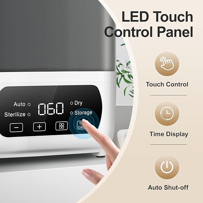 Baby Bottle Steamer and Dryer, Electric Steamer and Dryer for Baby Bottles, 4-in-1 Bottle Steamer and Dryer, Universal Fit for All Bottles, LED Touch Screen, Auto Shut-Off