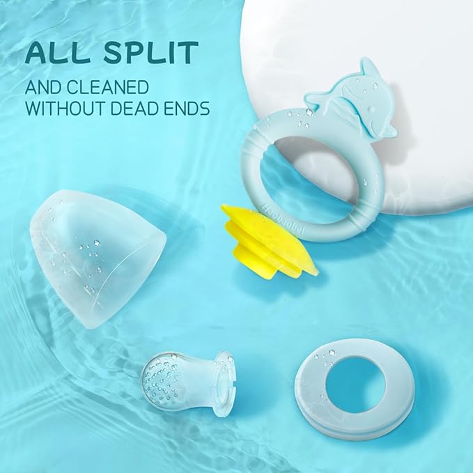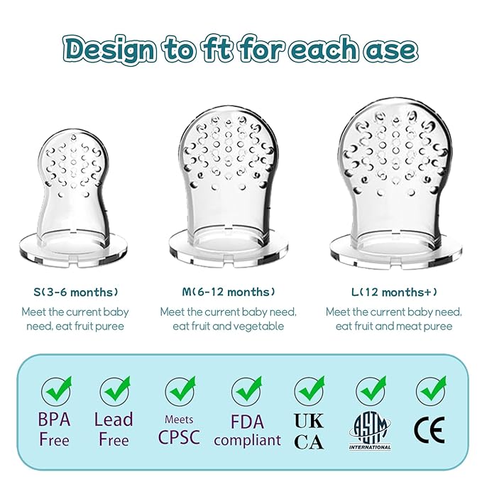 • 【TRY SOLID FOOD FLAVORS】HAOBAOBEI silicone feeder set including 2 pack baby silicone feeder with 4 silicone pouches, which is designed to fit for each age. Just put fresh fruits, food or frozen breastmilk, your baby will enjoy the taste of solid foods by chew the baby feeder.