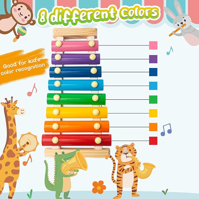 • Perfect Gift - With its portable design, captivating appearance, and educational value, this xylophone toy makes an excellent birthday or holiday gift. This toddler xylophone fosters music interests and enhances parent-child bonding.