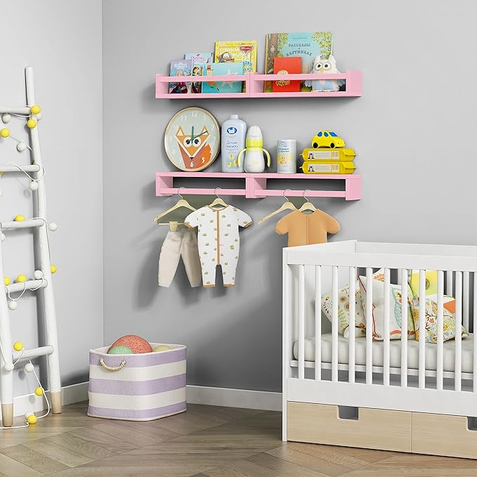 • [Great for Nursery and Kids Room] Mount these floating shelves on your nursery wall, Kids can stow books, toys, stuffed animals and games in wall shelving, where they’ll be off the floor and easy to reach.