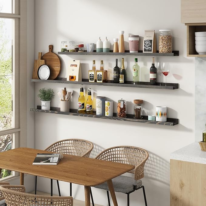 • Picture Ledge Shelves: The ledge in front of the wall shelves could prevent your precious items from falling off. And we handcraft a shallow groove on each book shelf to protect your items from sliding forward. Each floating shelf is 5 inches in depth with a 1.25 inches lip, you can put photos, pictures, DVD players, videos, books, toys, and some other knickknack on this beautiful display wooden shelf