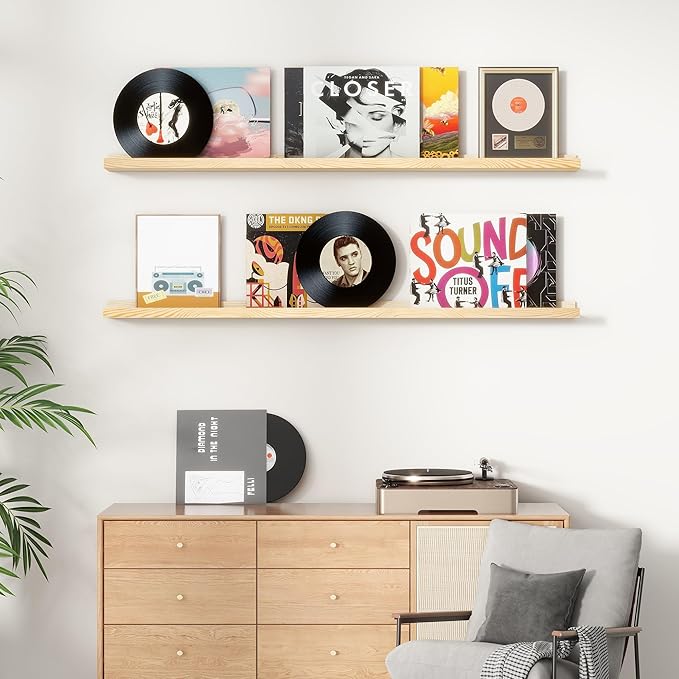 • Easy to Install: You will get a level, screws for the wall, drywall anchors, a detailed installation guide, and two beautiful hand-crafted solid pine wood shelves. With the level, you can make sure your picture ledge shelves are well aligned. Just follow the simple instruction to install the hanging shelves for wall decor within 10 minutes. We add additional screw and anchor to the hardware bag just in case. If you have any questions about our products, please feel free to contact us